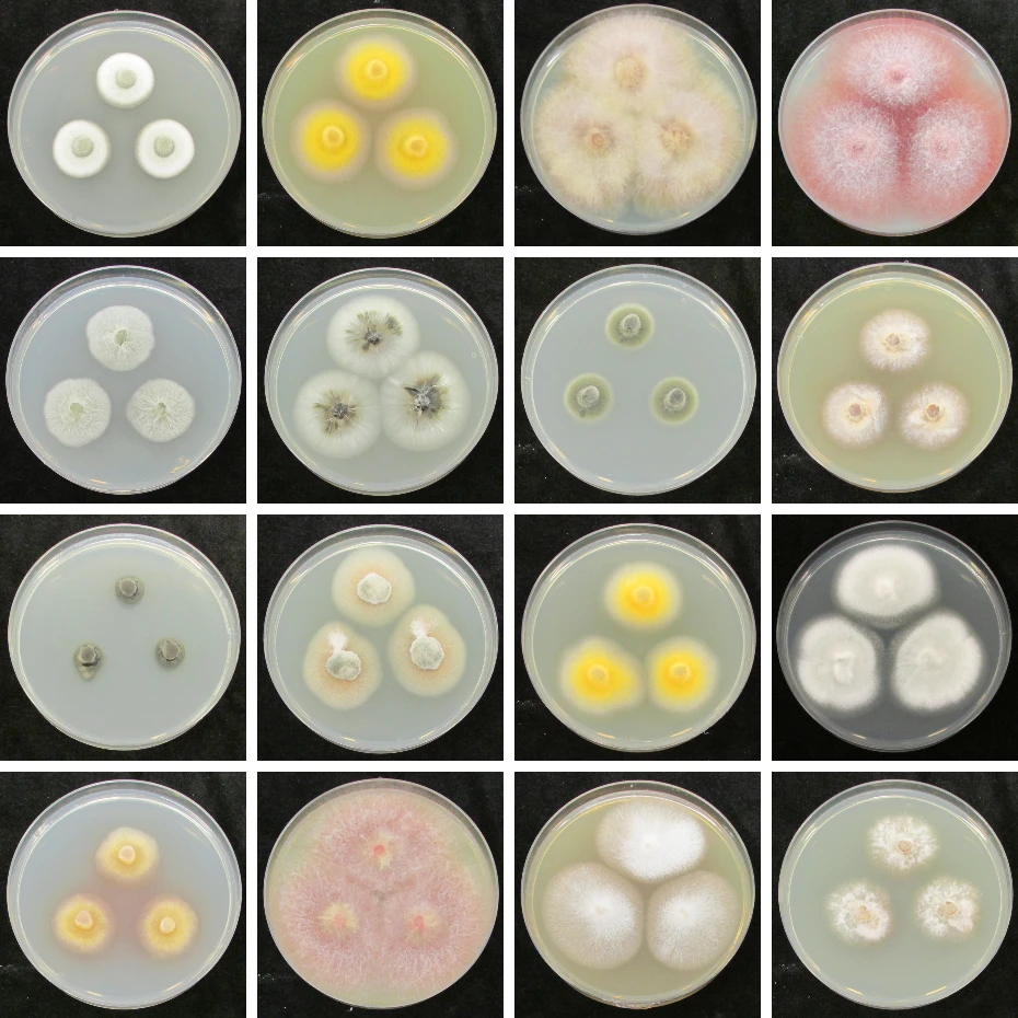 We keep a growing collection of fungal strains isolated from multiple locations, habitats and substrates, representing a broad biodiversity. We have made many of these strains available to the wider scientific community at the public strains collections of the Westerdijk Fungal Biodiversity Institute and the German Collection of Microorganisms and Cell Cultures.